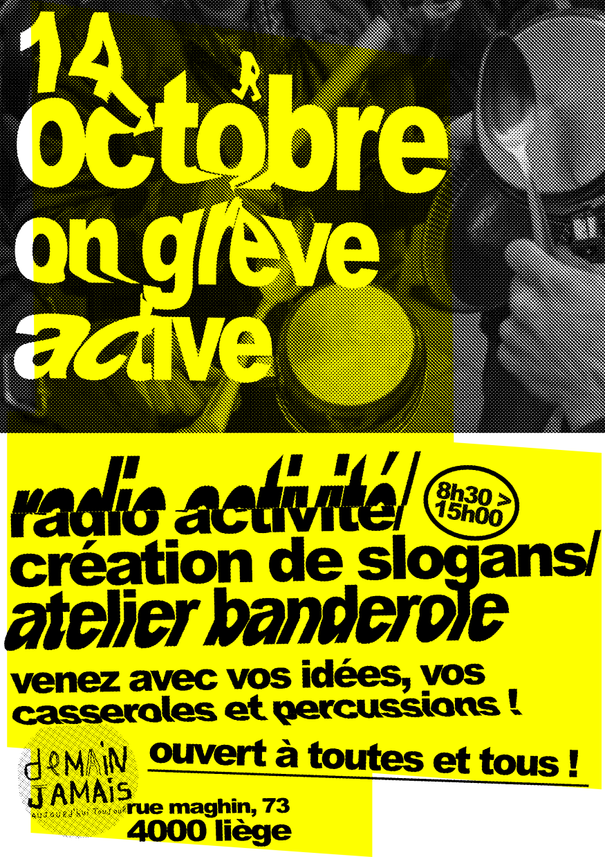 Le 13 février, jour de grève et de manifestation nationale en signe de protestation envers le nouveau gouvernement, Revers était présent à Bruxelles et aussi à Demain Jamais pour marquer le coup. Brasero à l’extérieur, soupe gratuite, portes ouvertes à tous ! Le matin, préparation de la soupe collective et moment pour exprimer par écrit nos revendications et nos ras-le-bol ! Point fort de la journée, Radio Revers en direct, parole donnée à tout qui avait des choses à dire en lien avec le dysfonctionnement sociétal actuel et les violences subies par les citoyens. Lecture des revendications, micro-trottoir, interview des passants, interludes musicaux avec des chansons engagées, le tout dans une ambiance conviviale de lutte, de réflexions, d’échanges, ambiance intergénérationnelle aussi, avec la prise de parole des enfants présents. À Demain Jamais, libération des paroles sans tabou, réflexion autour de pistes pour « faire bouger les choses » et à Bruxelles, 100 000 personnes dans les rues ! On ne lâche rien, rendez-vous le 31 mars !